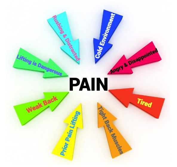 Let’s consider what items may be converging to create pain in our lifting example above. Pain science teaches us that there are external and internal inputs to the pain experience (Gifford, 1998). External inputs come from our body tissues and environment, while internal inputs are stored in the brain and include beliefs, past experiences, knowledge, culture, and more. Adding all of the inputs (emergent items) into the lifting example gives us a broader picture of the event. These include such things as a cold environment, rushing because you are late, tired from a poor night of sleep, a previous experience of pain while doing the same activity, tight back muscles, feeling angry and disappointed because you have overscheduled yourself again, distracted attention, and the beliefs that your back is weak and that lifting is dangerous.